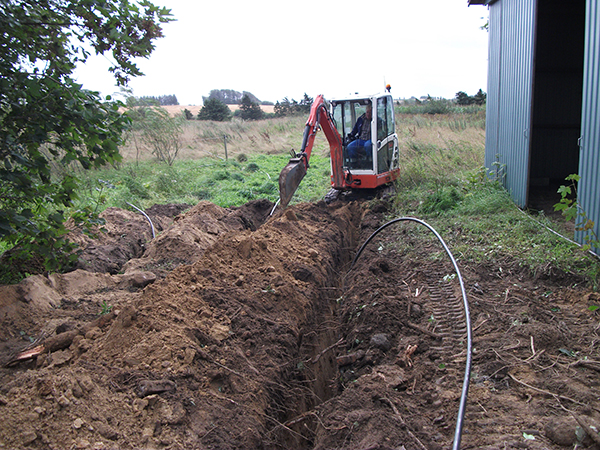 - at etablere nye udvendige og indvendige varmeforsyningsledninger, herunder fra halmkedel til stald
